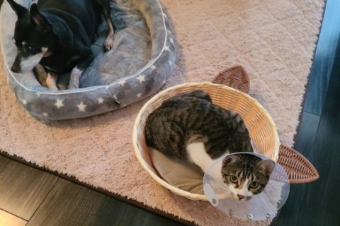 今年の6月に現場にて電気工事職人サンたちに保護され その後、永徳電業社長宅の新しい家族になった2匹の子猫は先日去勢手術、避妊手術を無事に終えました